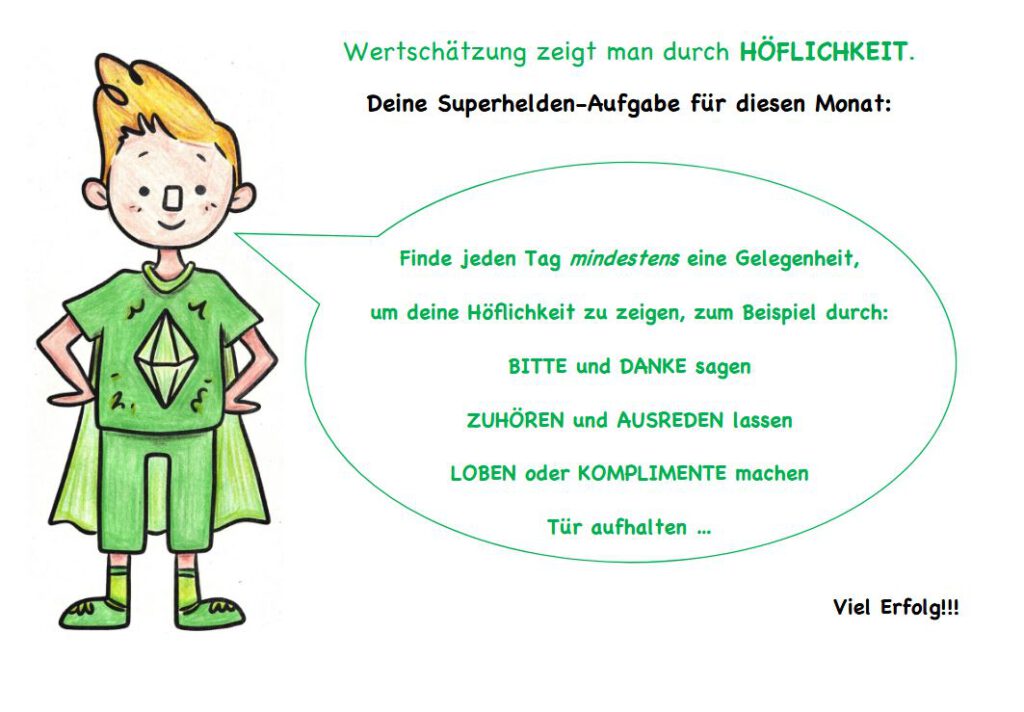 Ab dem neuen Jahr wird es ein Motto des Monats geben. Dies wurde durch das SchülerInnenparlament initiert. Sie haben sich gewünscht, dass unsere Superhelden wieder verstärkt in Erinnerung gerufen werden, damit sich alle in der Schule wohlfühlen können.